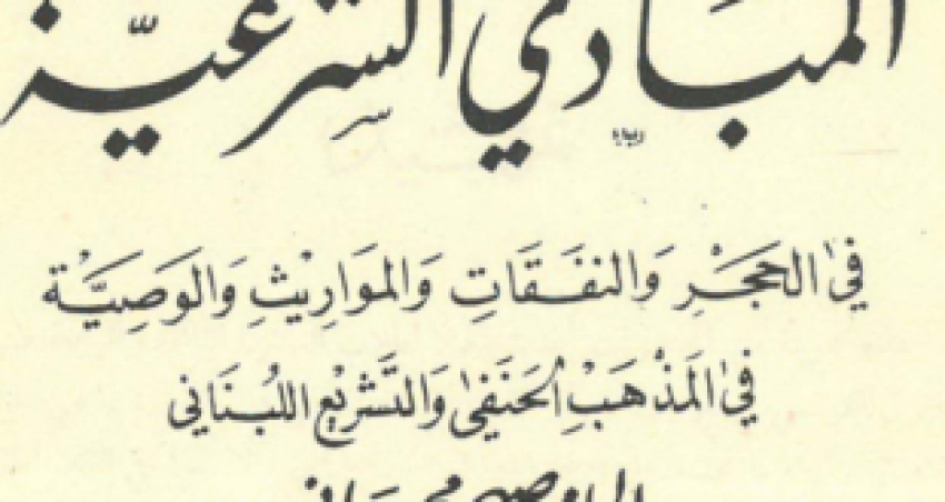 كتاب للدكتور صبحي محمصاني -رحمه الله- بعنوان “المباديء الشرعية في الحجر والنفقات والمواريث والوصية في المذهب الحنفي والتشريع اللبناني”، وهو في أصله مجموعة من المحاضرات أعدها المؤلف لتدريسها في معهد الحقوق الفرنسي في بيروت، تضم مدخلًا في الفقه الإسلامي وتطوره ومصادره، ثم يبحث في بعض أحكام الأحوال الشخصية، وهي أحكام الحجر وفاقدي الأهلية والوصية والنفقات والمواريث، وذلك وفقًا للمذهب الحنفي، مع أهم التعديلات التي طرأت على هذه الأحكام في التشريع اللبناني”.
