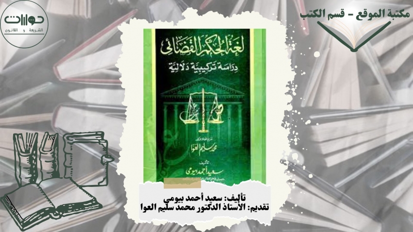 وبين أيدينا اليوم كتاب في جانب تأخرت العناية به جدًا في البحث اللغوي المعاصر، يدل على ذلك ندرة المراجع التي وجدها الكاتب في صلب موضوعه في المكتبتين اللغوية والقانونية، وهو كتاب يعنى بلغة الحكم القضائي التي هي نمط خاص من أنماط العربية الفصحى العصرية، وهو نمط كان يحتاج إلى دراسة بنيته التركيبية والدلالية دراسة ناقدة تبين خصائص لغة الحكم القضائي، والعوامل التي تؤثر فيه، والغايات التي يهدف الحكم المكتوب إلى تحقيقها، ومدى وصول الأحكام إليها.