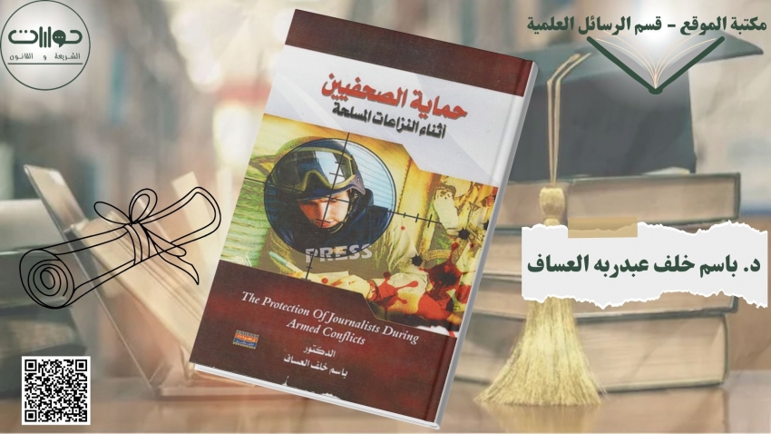 واختتم الباحث دراسته في الفصل الثالث الذي تناول فيه المسؤولية الدولية عن انتهاك حقوق الصحفيين ومقرات الصحافة من خلال تعريف هذه المسؤولية، وبيان أساسها القانوني، وكذلك التعرض للتكييف القانوني للانتهاكات التي يتعرض لها الصحفيون ومقراتهم الصحفية، بالإضافة إلى بيان المسؤولية الدولية المترتبة على مثل هذه الانتهاكات.